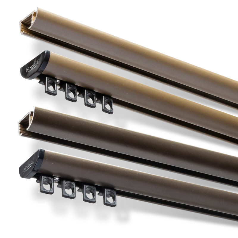 The return pulley is finished in high-quality powder coated aluminium, ensuring a perfect colour match with the track, enhanced colour fastness, and a luxurious, premium look.