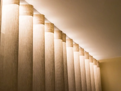 De DS-XL® LED komt het beste tot zijn recht met plafondsteunen, zodat de rail strak tegen het plafond gemonteerd zit. De rail is ontworpen voor gebruik in combinatie met ons FES systeem voor waveplooi, wat zorgt voor een perfect afgewerkt geheel. Kies bij voorkeur voor dunnere, (semi)transparante stof om de verlichting mooi door het gordijn te laten schijnen.