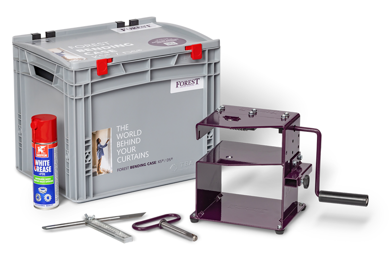 The KS®/DS® bending house is now supplied as standard with lubricant spray, an angle finder and a bending case. This ensures you have all the necessary tools within reach, allowing you to work more efficiently. The case keeps everything neatly stored, so the bending house is always complete and ready for the next job. The required bending wheel and strips can be ordered separately.