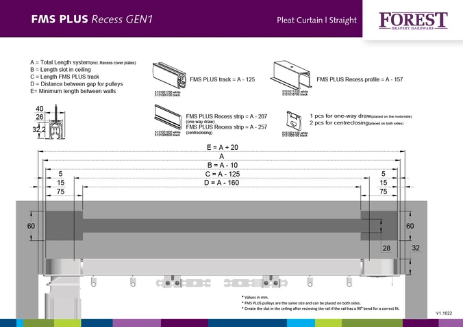 FMS Plus Recess situations and cut-out dimensions
