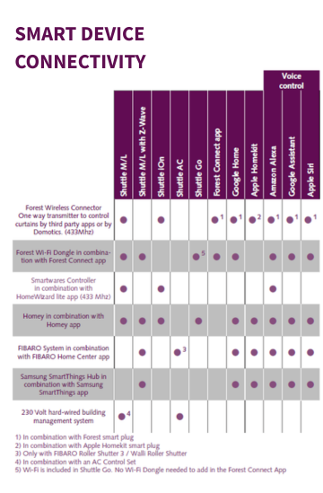 In today's technical world, smart homes are on the rise. This trend includes drapery hardware and Forest Shuttle® motors are a smart choice for home integration. Capable of integrating with all major home automation systems, the Forest Shuttle® is offered in 5 versions. Forest Shuttles motors are trouble-free, ultra-quiet and come with a 10-year warranty, three more reasons they are a smart motorisation choice for your smart home innovation.